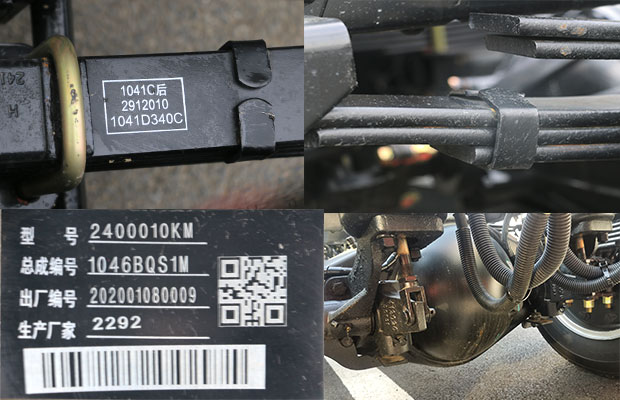 直通大梁厚度180mm,截面寬度800mm,斷面整潔布局合理,易改裝。 全鋁合金燃油油箱和儲氣罐,輕量化設計,鋼板彈簧10mm厚,片數5+4,后橋加重型號1046BQS(3.5噸),高質量工藝,承重性好。