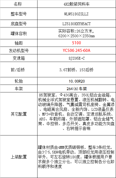 ②、柳汽乘龍H5高頂散裝飼料車(4*2)WLW5180ZSLLZ上裝部分由原廠公司承擔一年或三萬公里的免費上門維修。所有的上裝問題均由我公司直接與各廠車間協調派出人員上門維修。