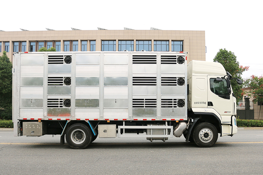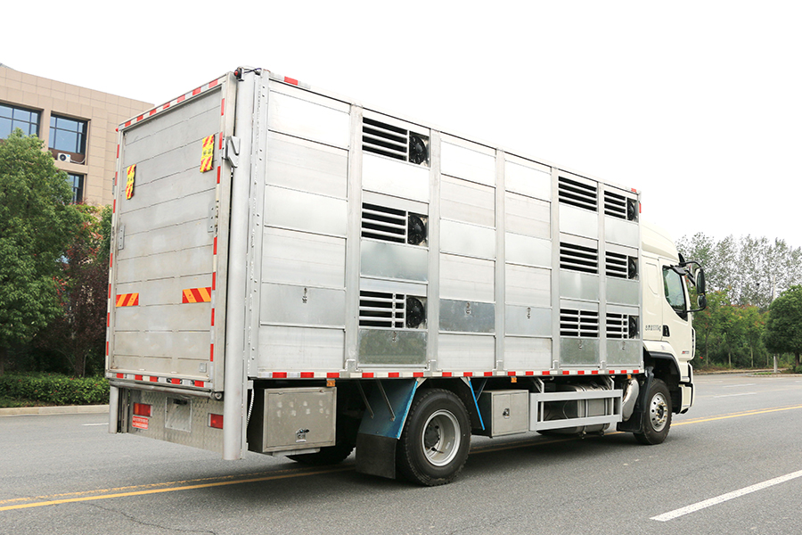 全鋁車身,三層,混合隔倉,可開合側(cè)窗,高轉(zhuǎn)速防水通風(fēng)排氣扇,機組,噴淋,監(jiān)控,垂直升降尾板,空氣過濾,裝豬數(shù)量達(dá)到550頭/7公斤