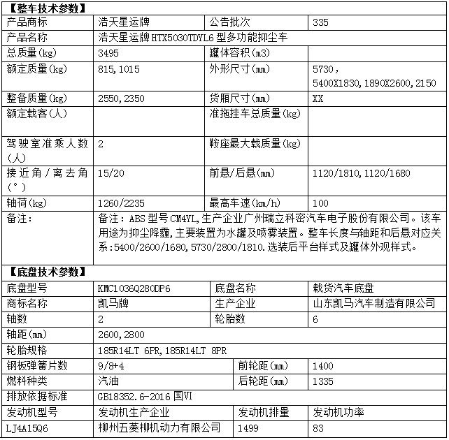 罐體采用標準Q235碳鋼制作,罐體自動焊,裝水3噸,配大功率專用灑水泵,可自吸自排,前沖后灑,側噴,主管道加粗,大通徑球閥,直通球閥式消防接口,帶后工作平臺,帶高炮。尾部大平臺,加裝30米噴霧機。環保、免征齊全。