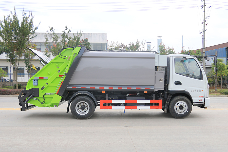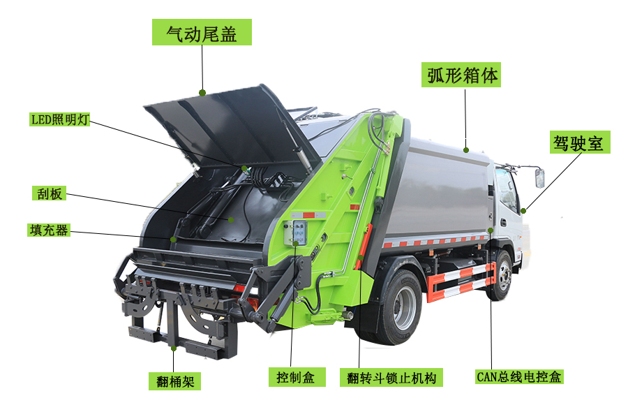 壓縮式垃圾車由密封式垃圾廂、液壓系統(tǒng)、操作系統(tǒng)組成。整車為全密封型,自行壓縮、自行傾倒、壓縮過程中的污水全部進(jìn)入污水廂,較為徹底的解決了垃圾運(yùn)輸過程中的二次污染的問題,避免了給人們帶來不便,關(guān)鍵部件采用進(jìn)口部件,具有壓力大、密封性好、操作方便、安全等優(yōu)點(diǎn)。 可選配后掛桶翻轉(zhuǎn)機(jī)構(gòu)或垃圾斗翻轉(zhuǎn)機(jī)構(gòu)。壓縮式垃圾車構(gòu)成密封式垃圾廂、液壓系統(tǒng)優(yōu)點(diǎn)壓力大、密封性好、操作方便。