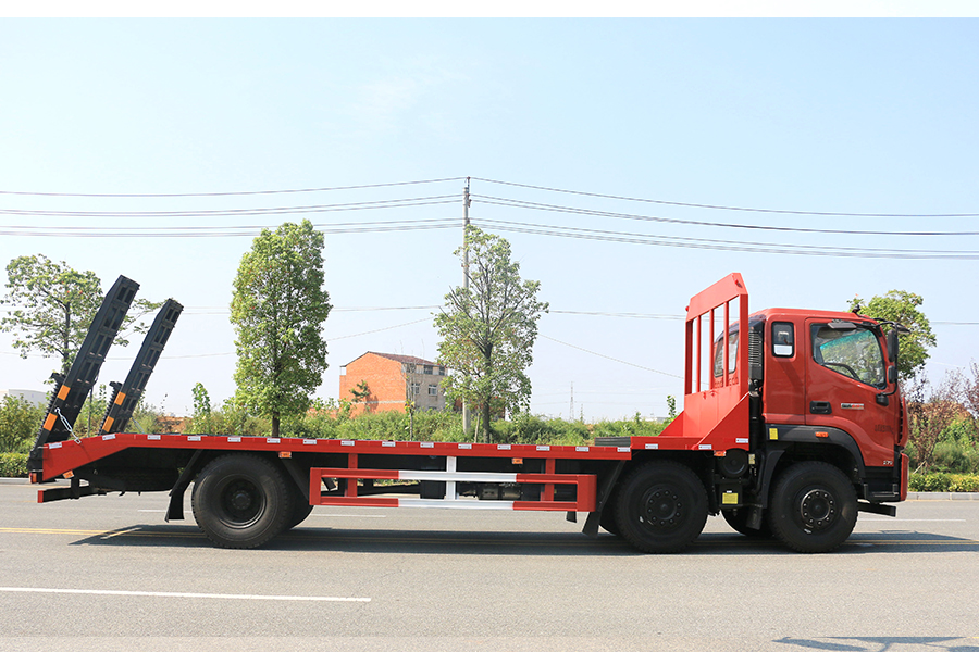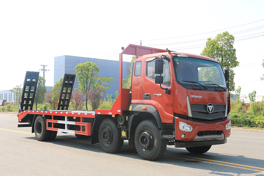 平板運輸車又名為工程機械運輸車、平板車、低平板運輸車,主要用于運輸一些像挖掘機,裝載機,收割機一樣的不可拆卸物體。平板運輸車是生活中常見的大型載重貨車,這種車一般被廣泛用于工廠,工地等大型生產或工程所在地,平板運輸車的承重能力強的特點使其在經濟發(fā)展過程中起了重要作用。