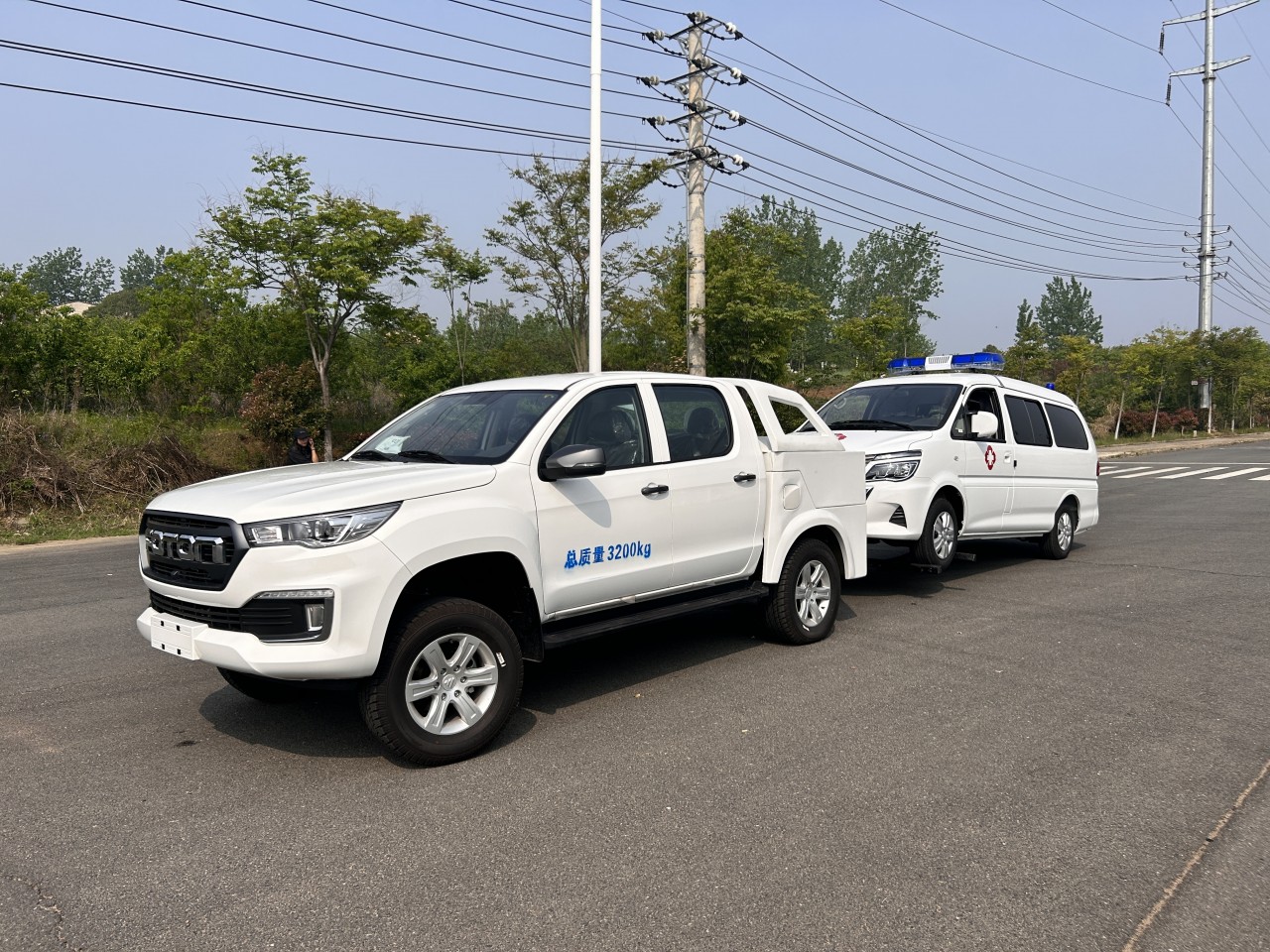 基于福田勝途5底盤改造而成,型號BJ1037V3MA6-1D,歐康2.0T-163馬力國六柴油發動機,6檔手動變福田皮卡BJ1037V3MAV-8A二類底盤,3110軸距,歐康120kw(163馬力,2.0T柴油發動機,)雙排5人座,采埃孚8AT變速箱,熏黑鹵素大燈/265/65R17輪胎/鋁合金輪輞/仿皮座椅/ABS+EBD/前盤后鼓/前排普通三點式安全帶/后排中間兩點式兩邊三點式安全帶/LED日間行車燈/前霧燈/大燈延時關閉/側踏板/內后視鏡手動防眩目/A柱扶手/點陣屏儀表/仿皮多功能方向盤/主駕座椅手動6向調節/副駕座椅手動4向調節/雙氣囊/剎車輔助/倒車雷達/發動機防盜/定速巡航/8寸MP5/倒車影像/藍牙電話/電動空調/一鍵啟動/機艙蓋氣動撐桿/4揚聲器/后保險杠/胎壓監測 速箱,軸距3105mm,彈簧片數-/5,245/70R16輪胎,總質量2885Kg,帶方向助力,原廠離合助力,原廠空調, 可調大燈,倒車雷達,駕乘人數2+3,空間寬敞,駕乘舒適。