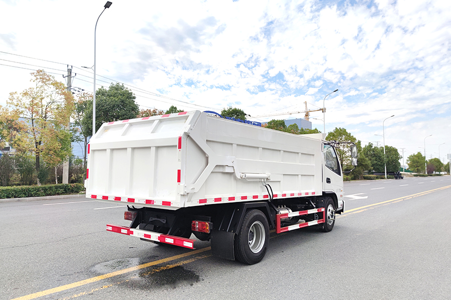 方形箱體,優質碳鋼制作,箱體底板4mm,邊板3mm,箱體選裝翼展蓋,液壓開啟,箱體后門剪刀式液壓開啟,后門帶密封條,國產油缸,國產多路閥;合肥液壓油泵,舉升油缸帶限位裝置,駕駛室電控操作,中置雙頂。