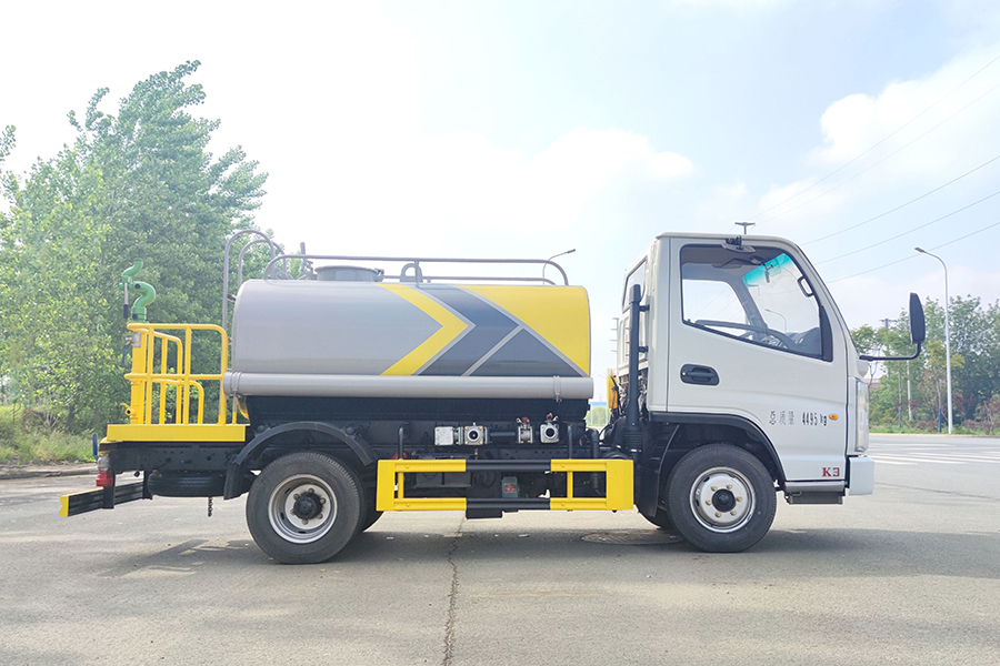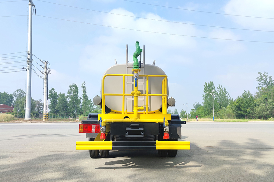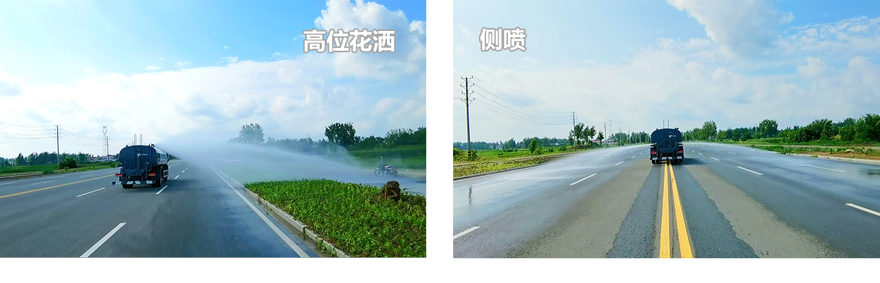 ★上裝配置:罐體用4MM碳鋼板制作,罐內(nèi)隔板具有防波作用,以減低汽車行駛時(shí)罐體液體的沖擊。整車帶一個(gè)專用灑水泵(垂直最大吸程6米),灑水寬度14米,射程28米。多功能灑水車配備2個(gè)前沖(噴)(能將路面泥巴、塵土、垃圾沖干凈);2個(gè)后灑(能均勻地將水灑在路面,一次灑水寬度14米)、2個(gè)側(cè)噴(花灑)(能均勻地將路旁綠化帶澆灌)、帶1個(gè)后工作平臺,平臺上安裝1個(gè)綠化灑水高炮(灑水炮可全方位旋轉(zhuǎn),可連續(xù)調(diào)成直沖狀、大雨、小雨、毛毛雨,霧狀可調(diào)節(jié)沖洗高大樹木),引水時(shí)間<5min,流量90m3/h。帶1個(gè)消防接頭,帶1個(gè)自流閥,1個(gè)過濾裝置、人性化爬梯及側(cè)防護(hù)欄,安裝灑水音樂喇叭。