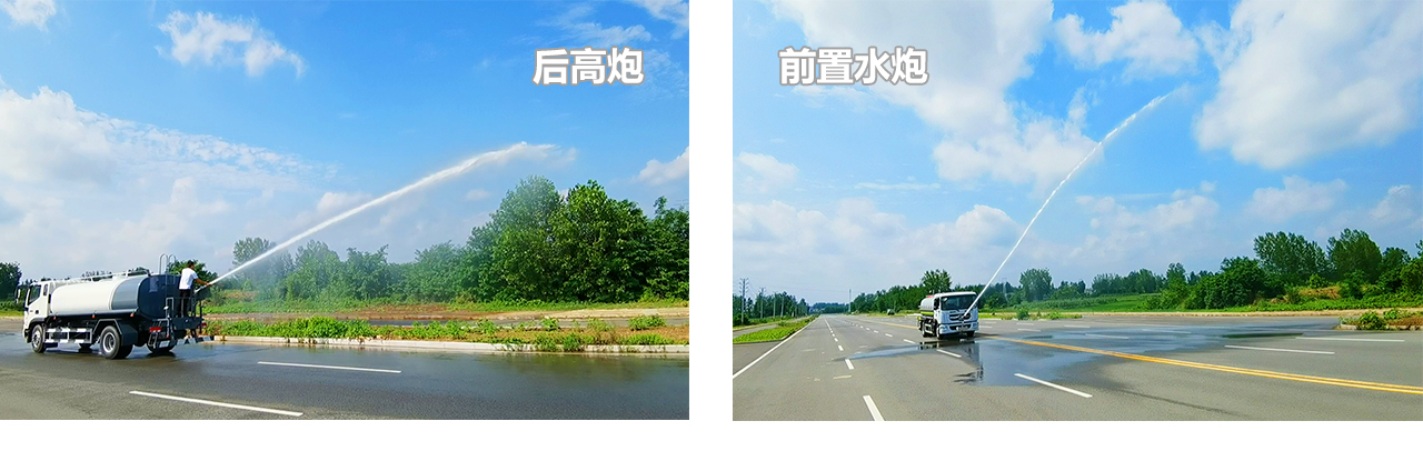 凱馬藍(lán)牌灑水車,標(biāo)配前沖、后灑、側(cè)噴、后置式工作平臺、平臺上有高壓水炮(可360°旋轉(zhuǎn),可調(diào)成柱狀最大射程35米,也可調(diào)成霧狀最大射程15米,可調(diào)成:直沖狀、大雨、中雨、小雨、毛毛雨),配備優(yōu)質(zhì)大功率專用灑水泵,取力器,雜物過濾網(wǎng),國標(biāo)通用65型消防接口(可通過消防栓加水)、1套自流球閥系統(tǒng)(可自吸自排,可從河里或池塘抽水到罐體,最大吸程7米),2根引水鋼絲膠管。水泵、取力器、球閥、濾網(wǎng)均為國家標(biāo)準(zhǔn)產(chǎn)品,主管道加粗,法蘭墊、法蘭盤加厚,萬向前沖,大通徑球閥,具有性能優(yōu)良,工作可靠、效率高、流量大、維修方便等特點(diǎn)。